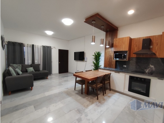No sólo las dimensiones del departamento lo hacen atractivo, sino que también cuenta con características internas que lo hacen aún más especial. Cuenta con agua y aire acondicionado, para que puedas disfrutar de una temperatura agradable en cualquier época del año. También tiene clósets en cada una de sus recámaras, cocina equipada y está completamente amueblado. Además, su habitación principal cuenta con baño privado y su suelo es de cerámica o mármol, lo que le otorga un aspecto elegante y moderno.